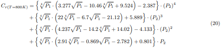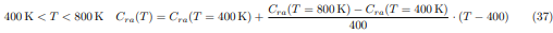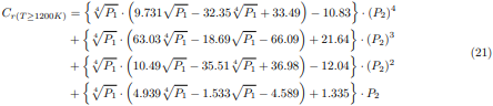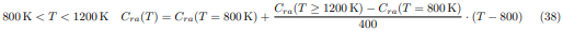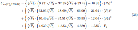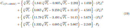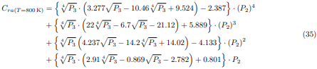 En las ecuaciones (34) a la (36), la desviación de presiones parciales P2 es calculada usando la ecuación (18). Para valores de temperaturas situados en los intervalos 400K < T < 800K y 800K < T < 1200K, el factor de corrección Cra(T) será determinado mediante la interpolación lineal de Newton, usando las siguientes relaciones: