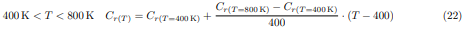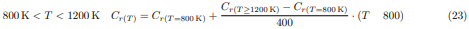 Para valores de temperaturas situados en los intervalos 400K < T < 800K y 800K < T < 1200K, el factor de corrección Cr(T) será determinado mediante la interpolación lineal de Newton, usando las siguientes relaciones: