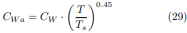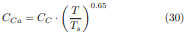 Si se cumple que P≠ 1 atm, entonces los valores de absortividades básicas para el H2O y CO2 deben ser modificados, u tilizando para este propósito los factores de corrección calculados con las ecuaciones (13) y (14), y un factor termodinámico que tiene en cuenta la no uniformidad de la distribución de las temperaturas en la superficie emisora y en el seno del gas. Matemáticamente esto queda de la forma siguiente: