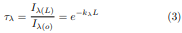 Combinando las ecuaciones (3) y (4) es obtenida la absortividad espectral de un medio de espesor L la cual viene dada por la ecuación (5):