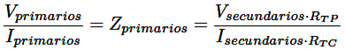 Tanto el voltaje como la corriente tomada por los transformadores de potencial (TP) y corriente (TC), son los que estiman la impedancia del relé, la misma que se expresa por Ωprimarios, al usar la conversión por la relación entre el TP⁄TC, la lectura que toma el equipo se da por Ωsecundarios, para convertir la impedancia primaria en secundaria se usa la expresión [17], ecuación (2):
