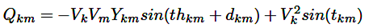 Las variables Qgk, Qdk están relacionadas con la potencia reactiva de generación y carga en cada barra. Las ecuaciones (27) y (28) calculan la potencia activa y reactiva por línea (Pkm y Qkm) y la potencia aparente Skm en la ecuación (29) controla la sobrecarga en la línea de potencia correspondiente.