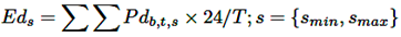 La energía de la carga Eds se calcula mediante la ecuación (36). La carga pico Pdmax,s representa la carga máxima diaria suministrada por el SP para cada escenario analizado, como se expresa en la ecuación (37).