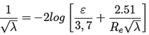 Colebrook y White [5, 6] propusieron una ecuación implícita para el cálculo del factor de fricción, λ, del flujo turbulento en tuberías, basado en sus resultados de sus investigaciones experimentales, la cual se expresa como la ecuación de Colebrook-White (1):
