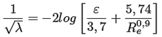 Donde a = −2, b = ε/3, 7 y c = 2, 51/Re .