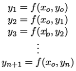 Donde la primera aproximación es y1 , la segunda es y2 , la tercera y3 , y la última es yn+1 ; siendo de manera creciente la sucesión para yn+1 , el cual inicia desde n = 0.