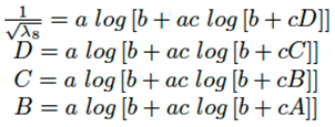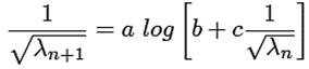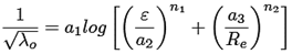 La ecuación (8) está basada en el logaritmo de base 10, la cual se emplea en los cálculos del presente trabajo. También, se puede expresar en función del logaritmo natural, siendo 1/ λ 𝑛+1 = a1In[b+c/ λ 𝑛 ], donde a1 = a/ln (10).