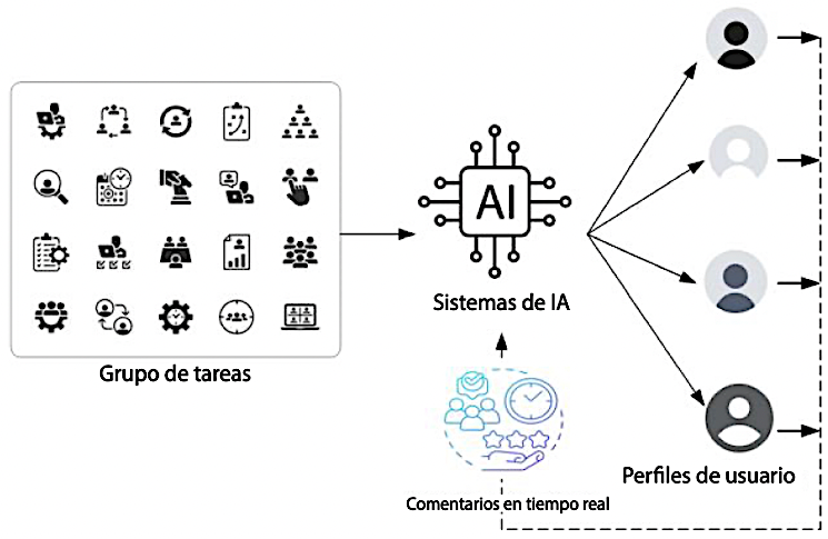 El aprendizaje por refuerzo refina este proceso al ajustar las asignaciones en tiempo real de acuerdo con la retroalimentación del desempeño, particularmente en entornos gamificados, donde el sistema aprende las fortalezas y preferencias de los usuarios y optimiza la distribución de tareas [36].