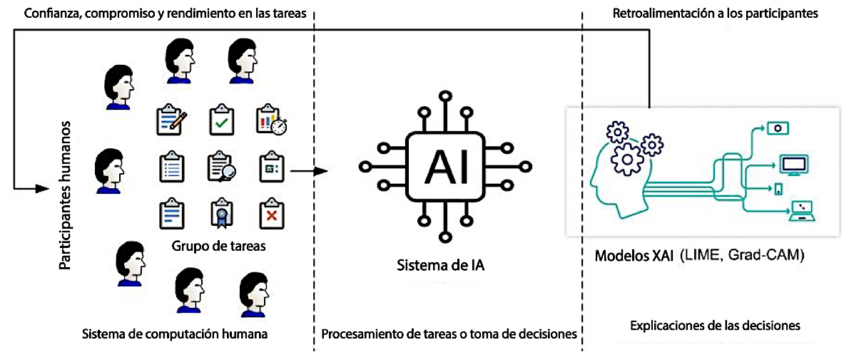 Al incorporar la XAI en estudios de caso de diferentes dominios, esta investigación evalúa su impacto en la confianza del usuario, el desempeño de las tareas y el compromiso, trascendiendo las ventajas teóricas para demostrar su aplicabilidad práctica en entornos reales de computación humana, ver la figura 3.