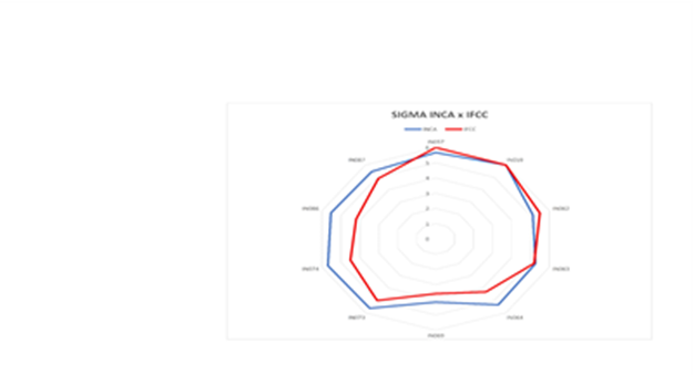O gráfico de radar (Gráfico 3) mostra a comparação entre o estudo IFCC e a métrica Sigma