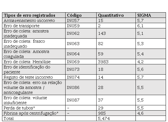 A hemólise foi responsável por muitos erros registados (3 983 erros).
