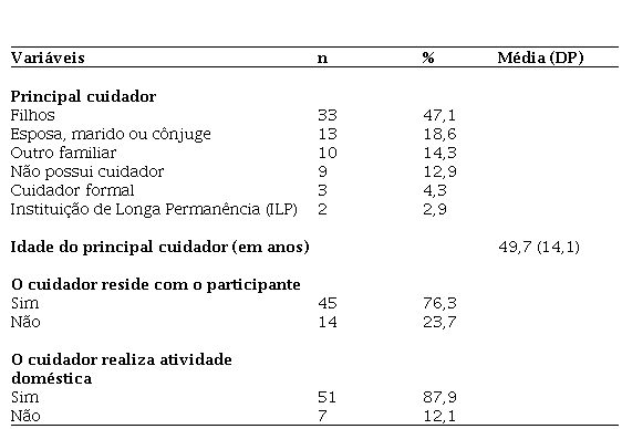 A tabela 2 apresenta os dados sociodemográficos dos cuidadores.