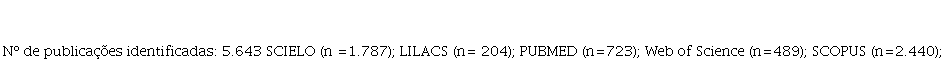 A busca dos estudos foi realizada em junho de 2022, em quatro bases de dados: Literatura Latino-Americana e do Caribe em Ciências da Saúde (LILACS); Medical Literature Analysis and Retrieval Sistem via PubMed (MEDLINE); Biblioteca eletrônica SCIELO e Web of Science e SCOPUS.