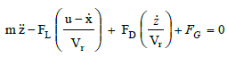 (2)en las cuales es la fuerza de sustentación, la de arrastre y la de gravedad, m es la masa de la partícula y del fluido agregado en ella, y
