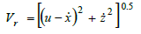es la velocidad de la partícula relativa a la velocidad del flujo, u es la velocidad local del flujo,