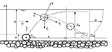 Para facilitar el análisis, se supone que la partícula que salta, Fig. 1, es esférica y de densidad uniforme y que las fuerzas debidas a la aceleración del fluido son de segundo orden.