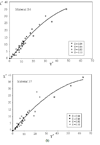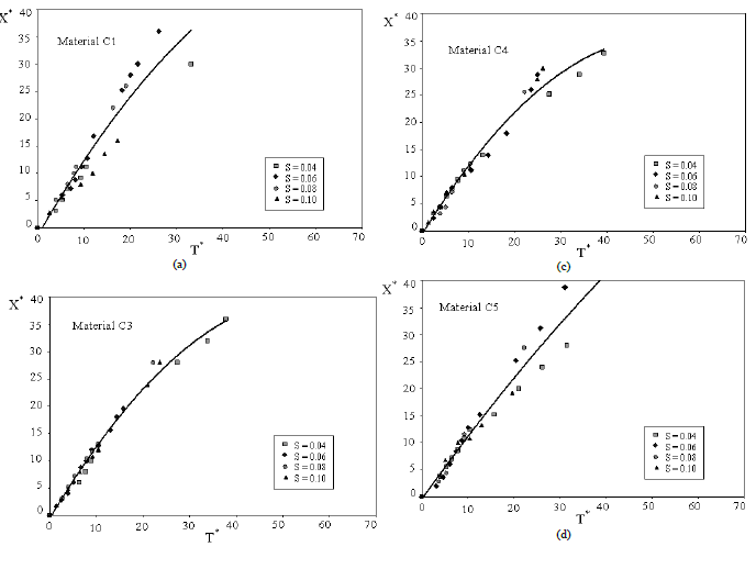 Se observa en la Figura 10d que existe una tendencia lineal entre los parámetros X* y T* indicando una variación en el comportamiento antes descrito.