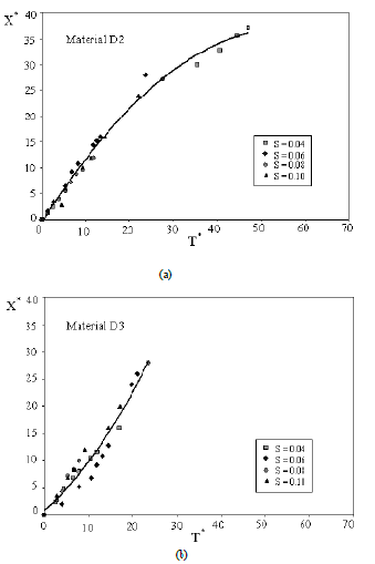 En la Fig. 11 se ilustran los valores experimentales de X* y T* para las matrices D2 y D3