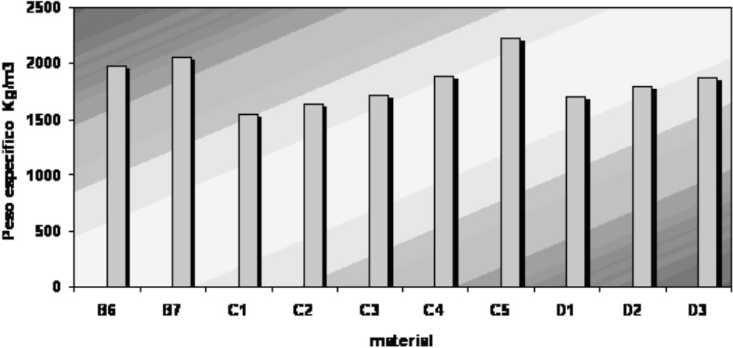 El desarrollo experimental realizado en este trabajo, cubrió el campo de la matriz de concentraciones, mostrado en la Fig. 2, con pesos específicos dados en la Fig. 3.
