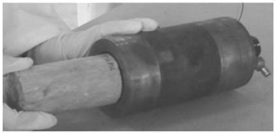 Paso seguido el fluido se vierte en moldes previamente preparados, obteniendo un grano de combustible con las siguientes características promedio: masa 368 g, diámetro externo 62 mm, diámetro interno 17 mm y longitud 100 mm.