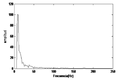 Para el rango entre 0 y 0,5 s se obtiene una frecuencia de 7.97 Hz para la máxima amplitud. El rango entre 1 y 1,5 s se obtiene una frecuencia de 9.96 Hz para el máximo valor de amplitud.