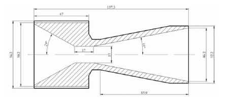 Plano tobera utilizada en el presente trabajo. Dimensiones en mm.
