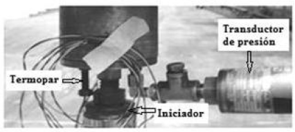 Además del iniciador, en una línea diametral se perforaron dos tomas roscadas opuestas entre ellas, cuya función es acoplar el transductor de presión y un termopar tipo K, como se observa en la figura 3.