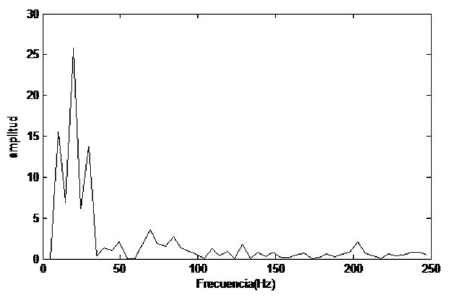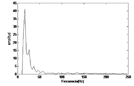 Para el rango entre 0,8 y 1 s se obtiene una frecuencia de 27.79 Hz para la máxima amplitud, de igual manera para el rango entre 3,35 y 3,65 s se obtiene una frecuencia de 16.56 Hz.