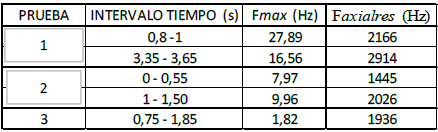 Al comparar Fmax y Faxialres en las tres pruebas realizadas, se observa que existe un distanciamiento sustancial entre estas frecuencias, por lo cual se puede decir que las frecuencias que se presentan en estas oscilaciones de presión no producen una resonancia acústica en la estructura del motor.
