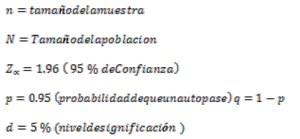 Para la realización de este cálculo se utilizó el estudio elaborado por el profesor Casanova, L (2009), el cual arrojó un Tráfico Diario Promedio (TDP) de 8625 Vehículos/día. Considerando 6 horas por día, y un tránsito aproximado de 8625 por día, entonces como tamaño población (N) se tomará 2156, proporcional al intervalo de tiempo contemplado, apoyados en la distribución de Poisson. (Olarte 2004)