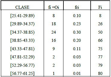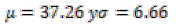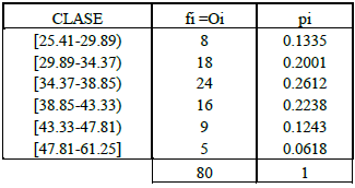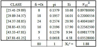 : por lo que concluimos que los datos se comportan como una distribución normal con μ= 37.26 y σ = 6.66, y un nivel de significancia de 0.05.