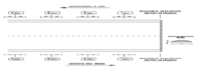 La separación entre los reductores cercanos a la muestra debía ser una distancia prudencialmente lejana para así poder observar libremente la velocidad promedio de recorrido de los vehículos en cada punto a estudiar. En nuestro caso, el reductor más cercano a la muestra se encontraba a 1800 m.
