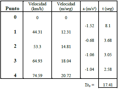 Al estudiar las velocidades en los puntos extremos tanto para la llegada como para la salida del reductor nos permite inferir que el tiempo de pérdida sea mayor ya que los vehículos cuando se encuentran en el punto más alejado (200 m. del reductor objeto de estudio) no logran alcanzar la velocidad de marcha que traían a la misma distancia antes de alcanzar el reductor.