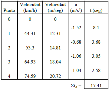 velocidad que trae el carro a los 200m., antes de llegar al reductor, no es