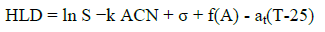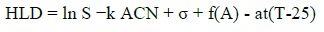 (1)La expresión numérica del HLD incluye las variables que pueden modificar la formulación fisicoquímica de sistemas SOW, las cuales son: la salinidad del sistema S (% NaCl), número de carbonos del n-alcano ACN, características del surfactante σ, f(A) es la contribución del alcohol en la formulación y ΔT es la diferencia de temperatura con respecto a la referencia (25 °C). Donde la formulación óptima corresponde a un valor de HLD=0, lo cual significa que la interacción del surfactante con la fase acuosa es exactamente la misma que con la fase aceite.