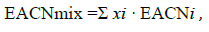 (3)donde EACNmix y EACNi son los números de carbonos del alcano equivalente de la mezcla y de los i componentes, respectivamente, y xi es la fracción molar del compontente i en la mezcla de aceites.