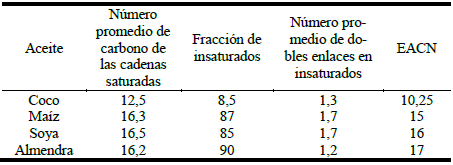 Como ejemplo, el EACN del aceite de soya se obtuvo a través de la ecuación: