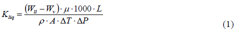 La permeabilidad al líquido se midió sobre los sand pack limpios y bajo presión de sobrecarga o confinamiento. Para calcular la permeabilidad al líquido se utilizó la fórmula de Darcy para líquidos incompresibles.
