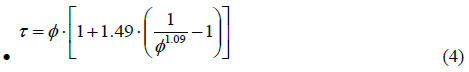La tortuosidad es una propiedad geométrica del medio poroso que refleja la longitud de la trayectoria de flujo a escala microscópica. Cuanto más larga sea la trayectoria de flujo, mayor será la tortuosidad del medio. En este caso la tortuosidad se calculó a partir de dos correlaciones distintas, una estimación aproximada de la tortuosidad en función del factor de resistividad de la formación (Ekwere, 2007) (2) y la ecuación propuesta por Tiab y col., 2004 (3).
