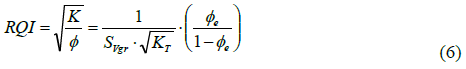 Amaefule y col, introdujeron el concepto de Indice de Calidad del Reservorio (RQI), teniendo en cuenta la distribución de los poros y granos, las dimensiones de las gargantas porales, y otros parámetros microscópicos de la roca almacén. Se define el RQI como:
