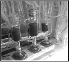 Lavado: El lavado de la muestra se realizó con un solvente orgánico (tolueno puro) mediante el método de Rall y Taliaferro (Fig. 2). El proceso consistió en un ciclo cerrado de evaporación - condensación del solvente que extrajo el petróleo por disolución.