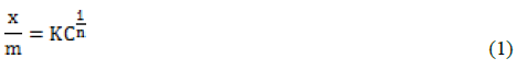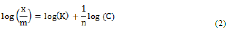 La Ecuación (2), es la forma de la ecuación de Freundlich que se utilizó para la construcción de las isotermas de adsorción.
