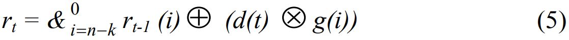 Con rt, símbolo de redundancia; d(t), símbolo de dato a codificar y g(i), coeficiente en la posición i del polinomio g(x). Este modelo ha sido empleando como técnica de paralelización la concatenación de términos, la cual está basada en una descripción tiempo – espacio de las funciones generadoras de los elementos componentes.