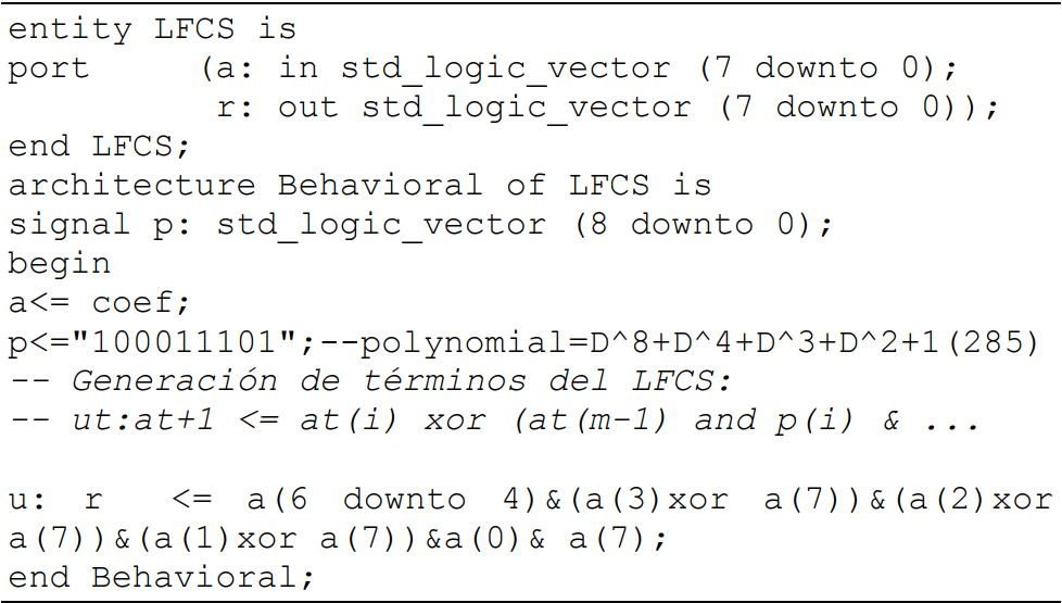 [1] Muchas investigaciones actualmente, se orientan al desarrollo de modelos VHDL para la descripción de aplicaciones, siendo de vital utilidad un modelo matemático que permita generar el código VHDL, a partir de ecuaciones que manejen funciones iteradas para su codificación. Estas apuntan hacia el estudio de las estructuras circuitales que usan LFSR (Sandoval 2012, 2010), a fin de configurar el circuito de forma concurrente, sobre hardware reconfigurable y obtener versiones eficientes de los mismos (Sandoval y col., 2014).