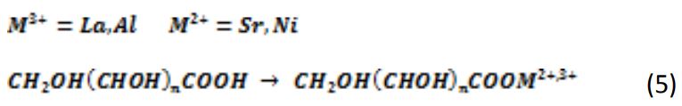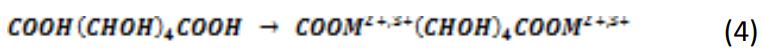 Existen varias rutas complejantes posibles. El ácido sacárico con dos grupos -COOH puede combinar los iones metálicos y formar –COOM3+, –COOM2+ que son estables, mientras que el ácido hidroxílico puede formar complejos con iones metálicos a través de los grupos –COOH (ecs. 4 y 5).