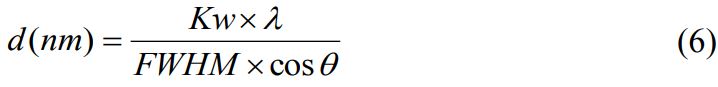 A partir de los datos obtenidos de los patrones de difracción de rayos-X, se determinó el tamaño promedio en todos los sólidos, utilizando la ecuación de Scherrer (ec. 6) (Langford y col., 1978).