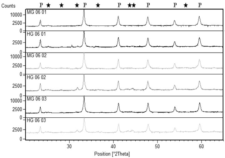 La formación de la fase perovskita, se ve favorecida en los sólidos preparados por la ruta con glicina. Al utilizar glicina como combustible, se alcanzan mayores temperaturas durante el proceso de combustión, induciendo a la formación de la fase perovskita (ver figuras 2 y 3).