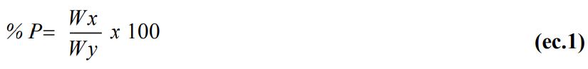 Se compararon los patrones de descomposición térmica de los precursores con los de los catalizadores obtenidos con la finalidad establecer los cambios producidos por la síntesis con los métodos de impregnación y coprecipitación. Los porcentajes de pérdida de masa teóricos vienen dados por la ecuación (ec.1), donde P = pérdida de masa, Wx= peso molecular de la molécula que se pierde y Wy= peso molecular del compuesto inicial.