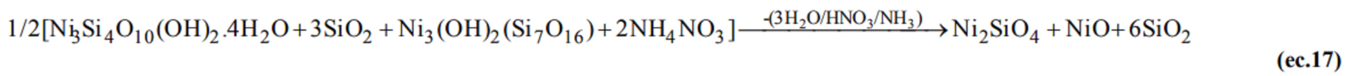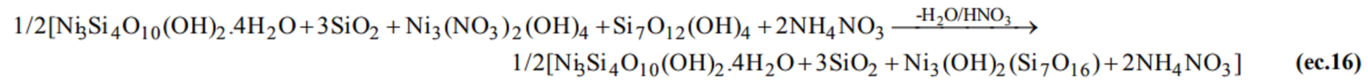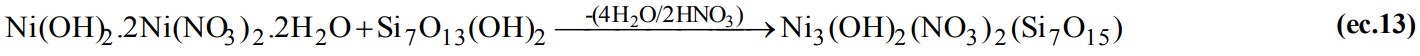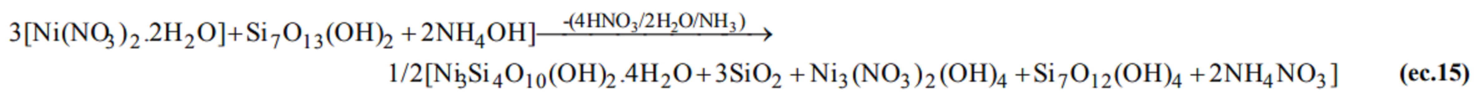 Y la formación del catalizador de níquel soportado sobre óxido de silicio, sintetizado por el método de coprecipitación, podría ocurrir según la siguiente relación: