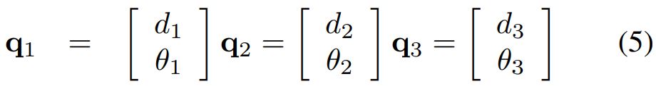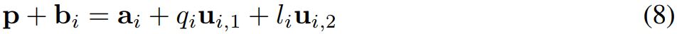 En la ecuación anterior ui,1 es un vectores unitario que define la línea de acción del par prismático i, y ui,2 es también un vector unitario dirección va desde el centro del par de revoluta hasta el centro del par esférico. Además, li define la longitud del eslabón intermedio o acoplador, mientras que qi define la magnitud de movimiento del par prismático.